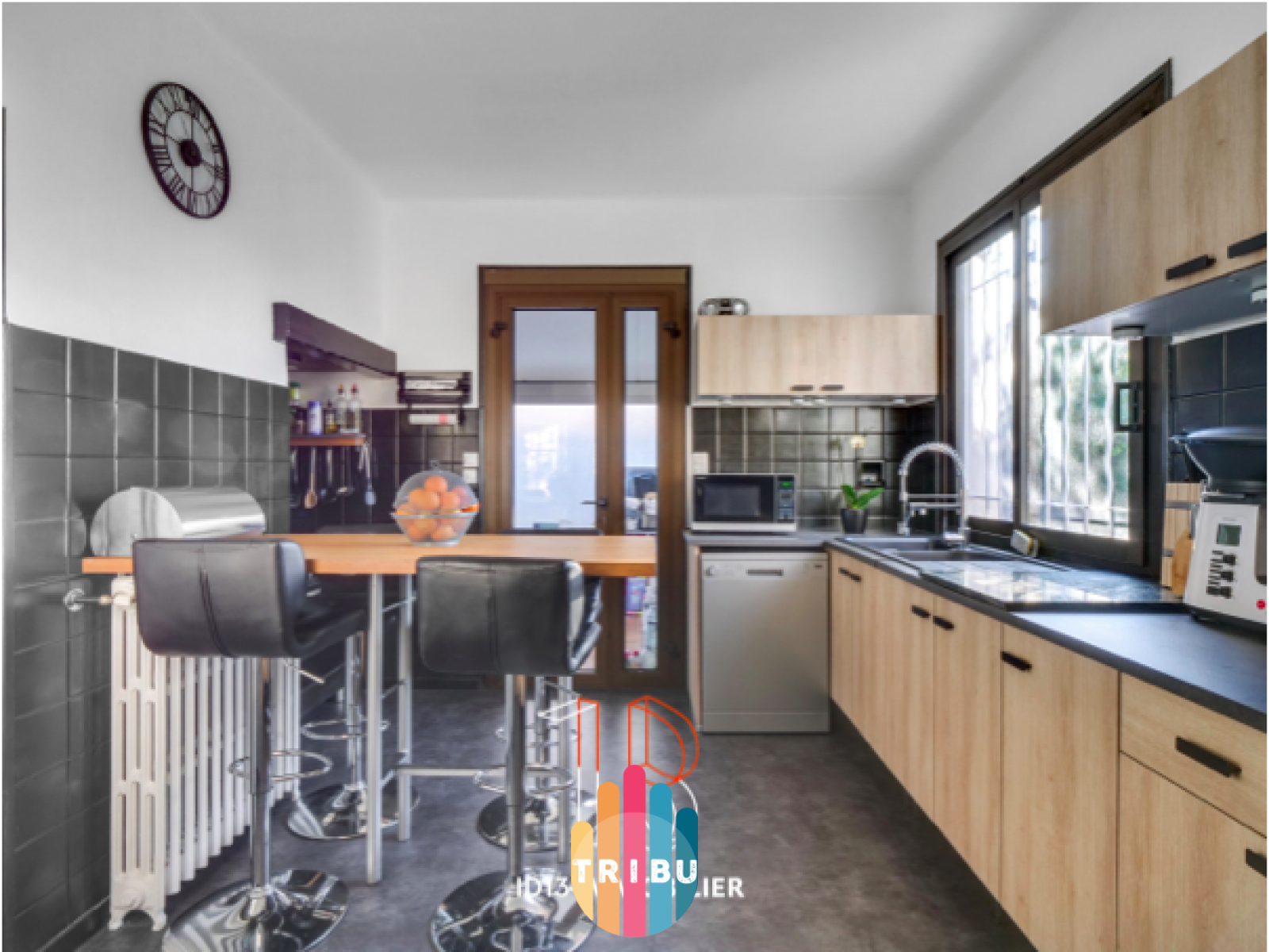 Cuisine équipée ouvrant sur une veranda de 23m2