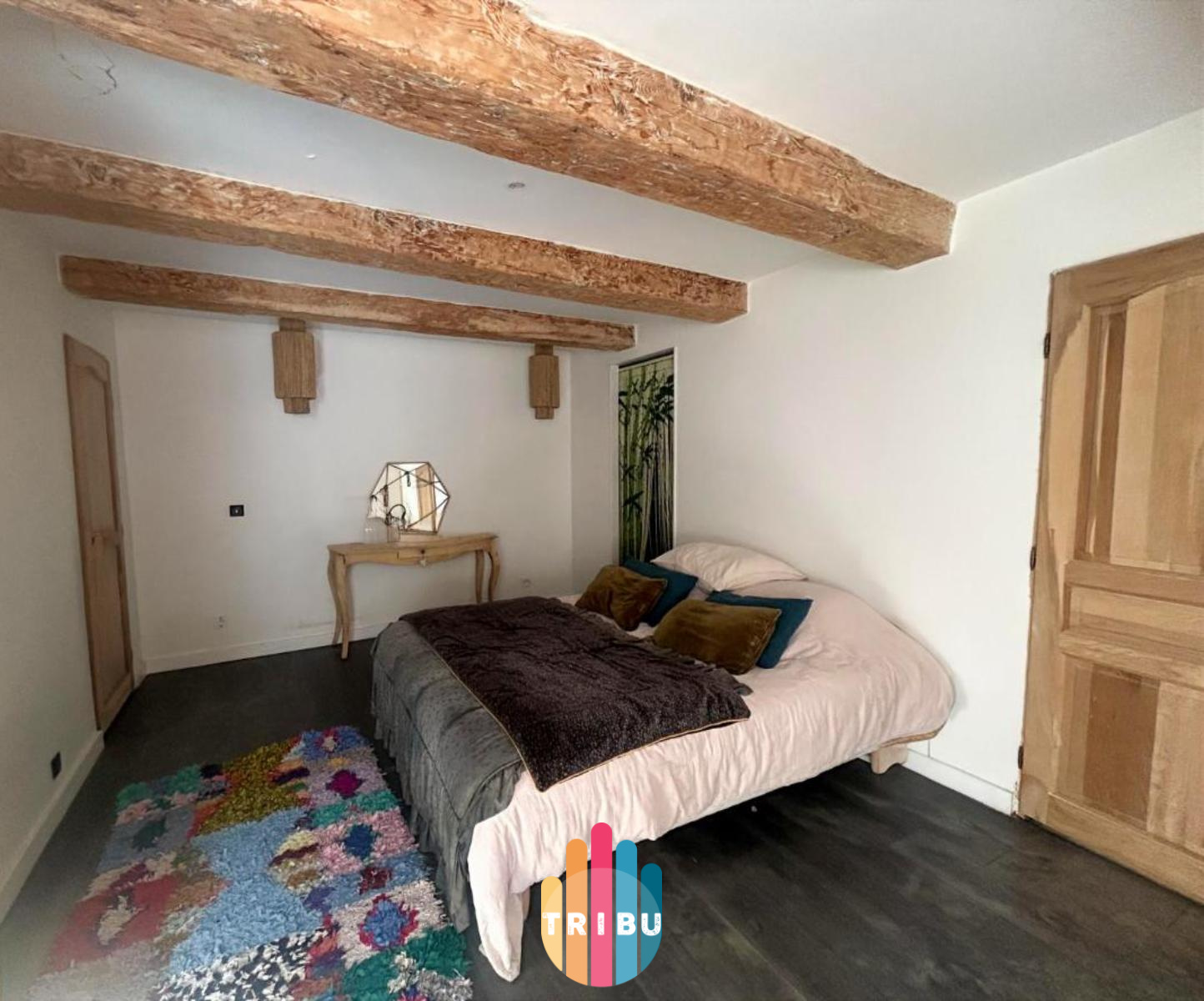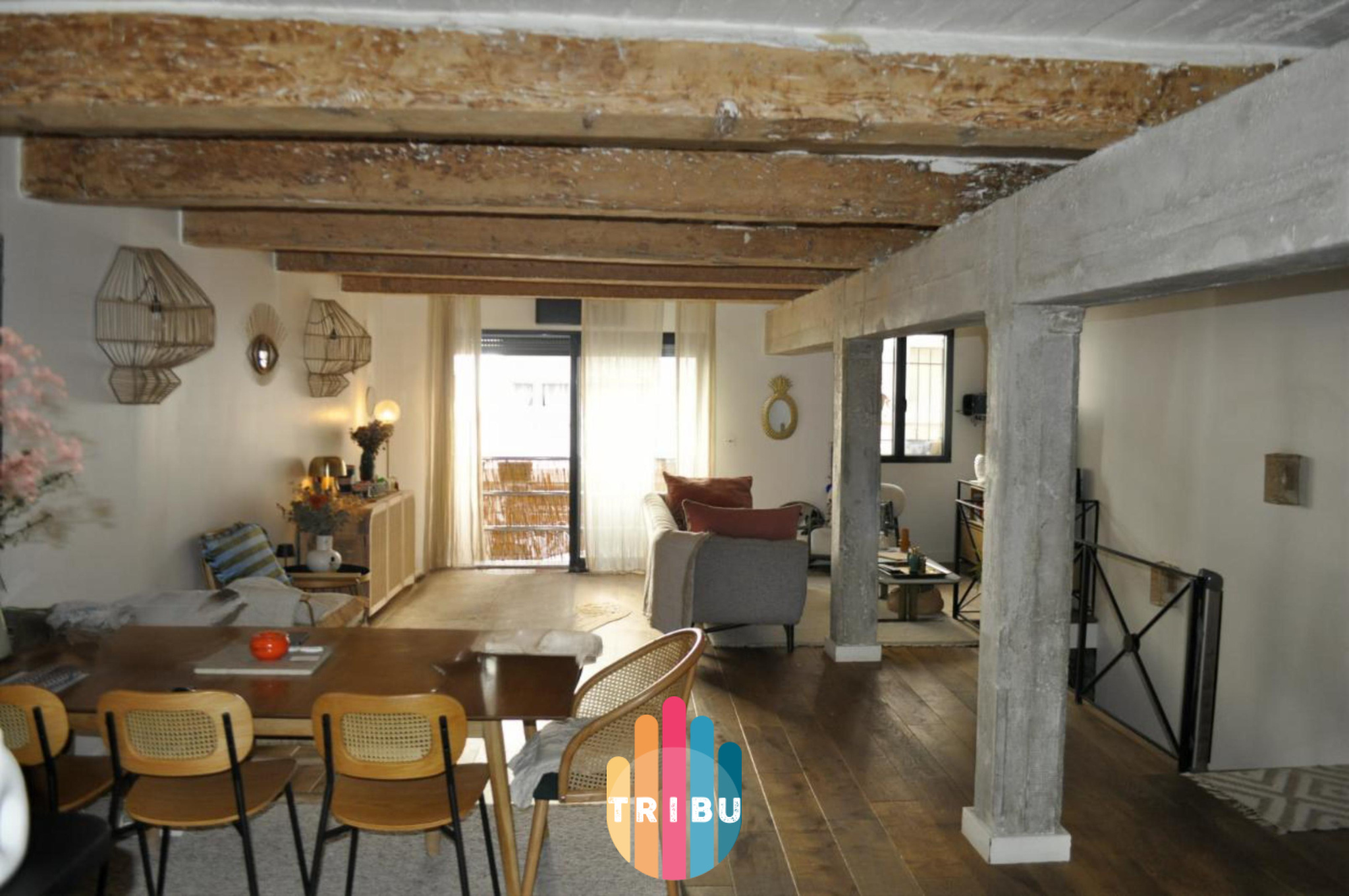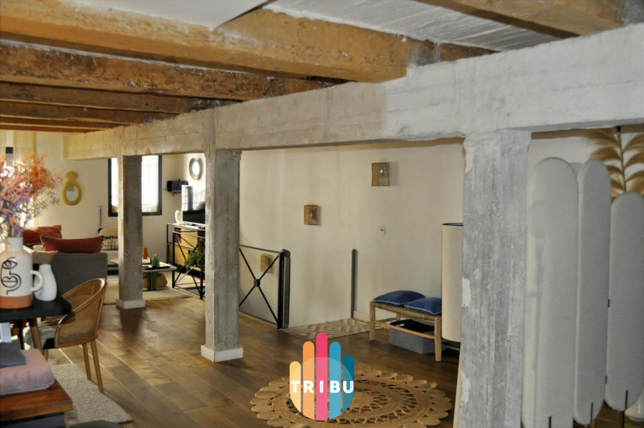 Ce bien rare se distingue par ses beaux volumes, ses poutres apparentes.