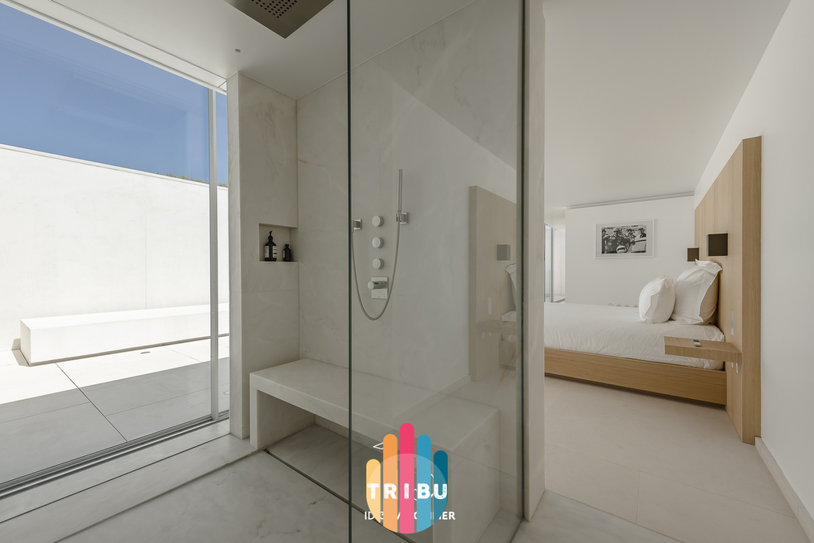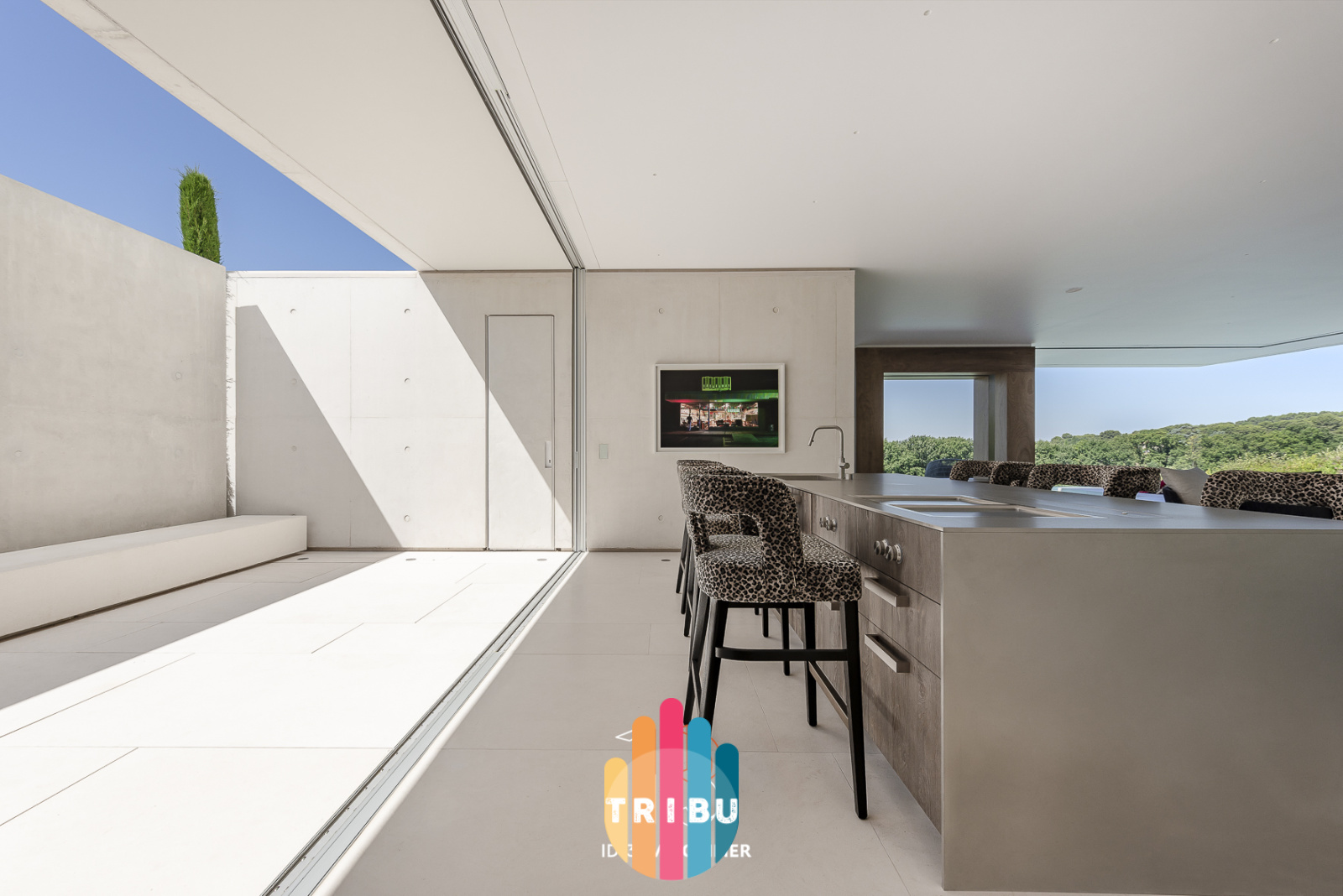 La villa est entièrement neuve et proposée à la vente avec ses équipements et son mobilier de grand standing. Sobriété et élégance.