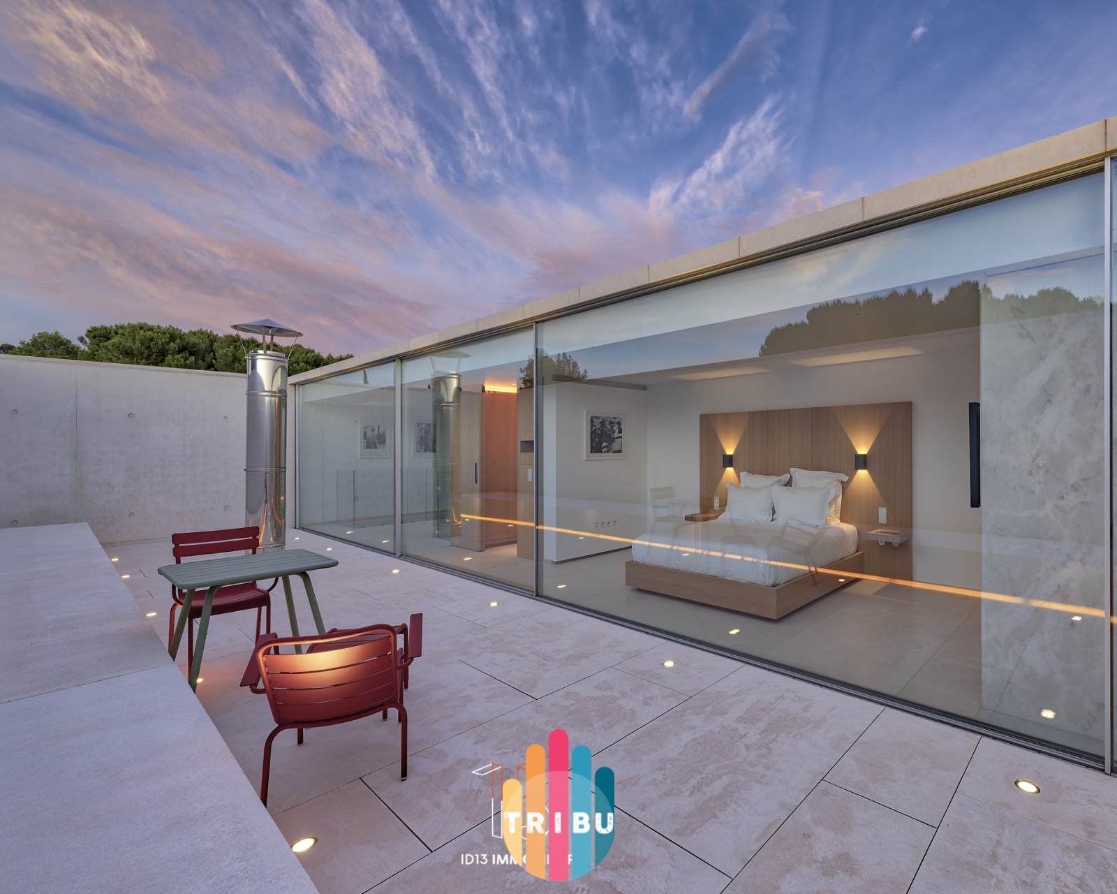 L’ensemble des baies vitrées ont été réalisées sur mesure dans des proportions très exclusives et offre à ce bien une expérience particulière « d’intérieur extérieur ».